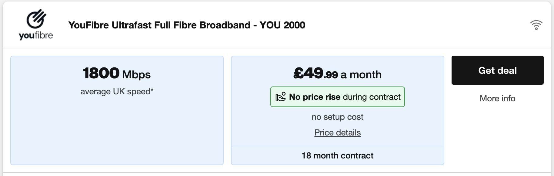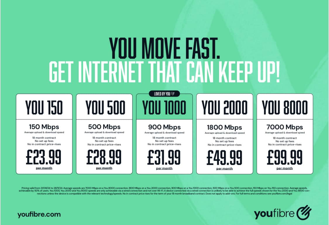 One of the biggest frustrations with broadband providers is hidden costs or sudden mid-contract price hikes. YouFibre stands out by offering: